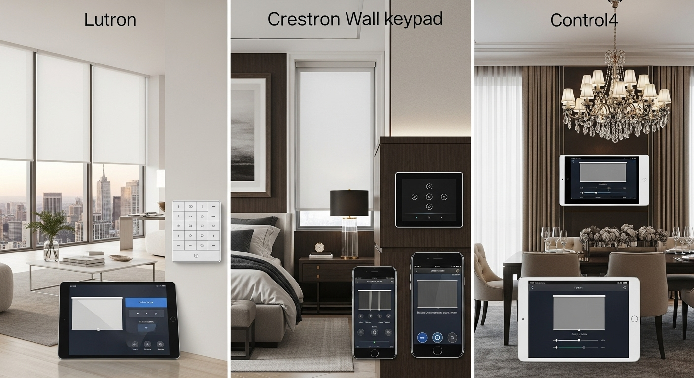 When it comes to smart shades, not all systems are created equal. The brands behind the technology matter just as much as the design. Three leaders dominate the luxury home automation space: Lutron, Crestron, and Control4. Each brings its own strengths, making it possible to tailor shading systems to a homeowner’s exact lifestyle.